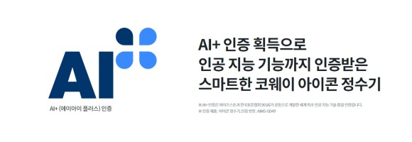 코웨이 아이콘 정수기는 에이아이 플러스 인증까지 받았는데요!